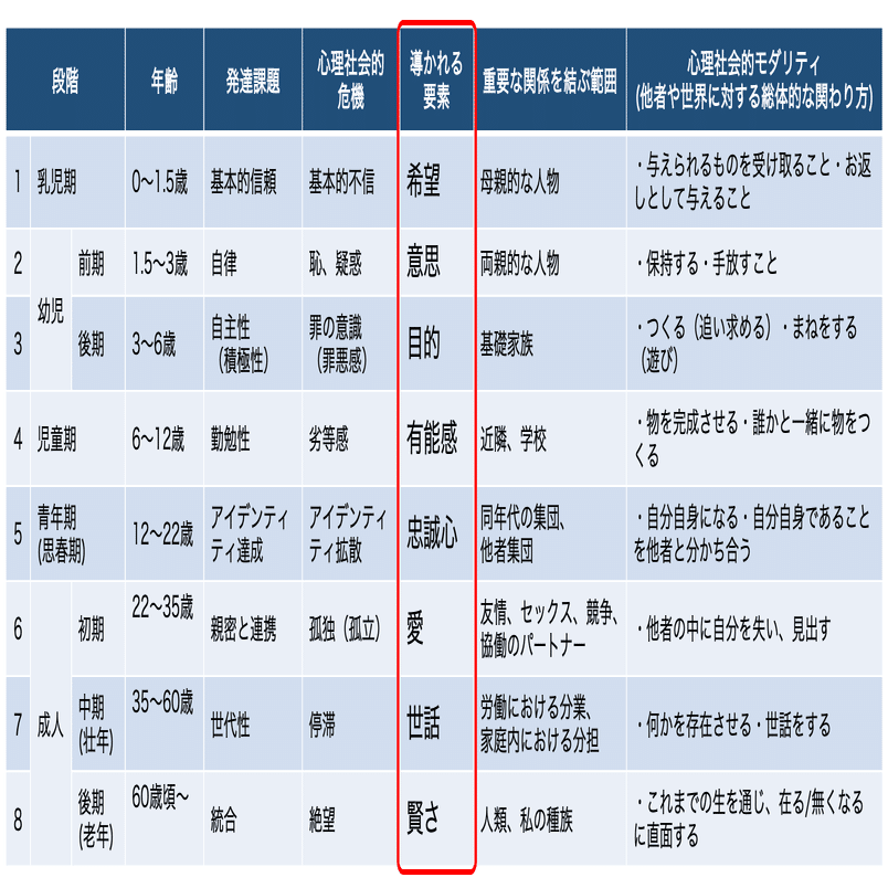 モチベーション源泉のキーワードとして、心理学で言えば、マズローの欲求階層理論やエリクソンのライフサイクル理論がある。両理論の解説は今回は省略するとして、「生理的欲求」「安全欲求」「親和欲求」「承認欲求」「自己実現」、「希望」「意思」「目的」「有能感」「忠誠心(自分を信じれる力)」「愛」「世話」「賢さ」などはヒントになるだろう。